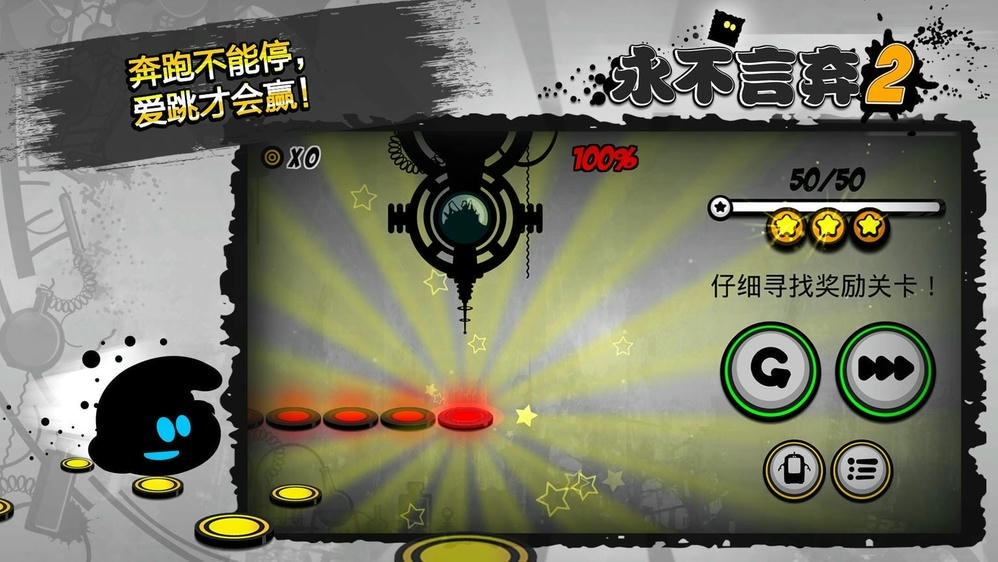 永不言弃2安卓版是节奏闯关游戏,永不言弃2游戏中虐心的小黑点又回来了,跟随节奏跳过高台以及障碍物,有全新的关卡等你来挑战,能够自由选择关卡难度,喜欢的朋友就来下载试试吧!