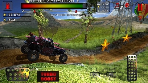 越野大师手机版在操作方面很简单,选择右下方油门,点击左下方刹车,而且能有一次推进的机会。该作品的图形引擎做得非常的出色,可以选择不同的车,而且是包括摩托、装甲车等!有兴趣的话就快来开着你的越野车来征服这些崎岖道路呗。