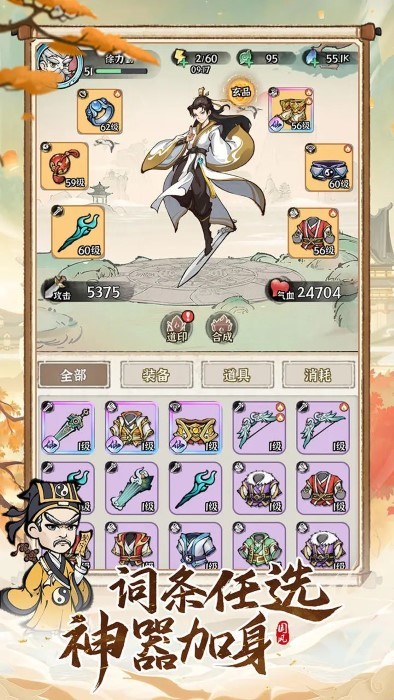 诛天剑侠是一个仙侠类的休闲国风水墨肉鸽手游。你将作为一名百年一遇的修仙奇才,获得天材地宝修炼提升境界,面对潮水般汹涌而来的敌人,游历各地瑰宝秘境。通过灵活走位搭配上古术法,最终成为修仙界大能!