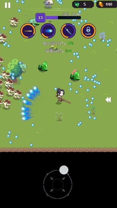 在游戏中需要很好的走位,远离怪物,不然就会失败。
