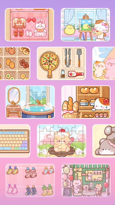 还有各种快速有趣的小游戏,比如行李收纳、制作披萨、拼图解谜等等,赚取额外金币升级你的糖果世界!