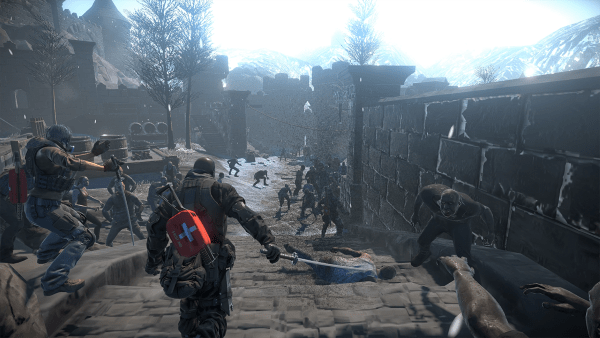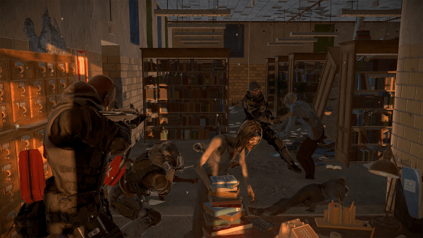 5、防守尸潮时,或通过狭窄地段时,如果你现在前方,请蹲下,向前或者向后直线移动,不要左右横跳,堵到队友的枪线。