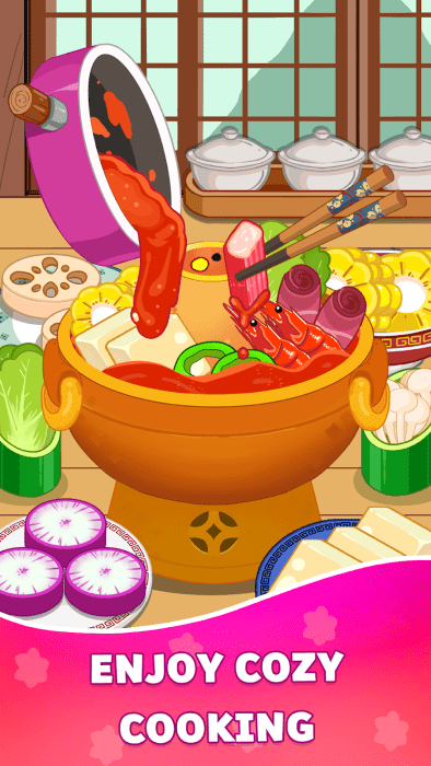轻松无压力的烹饪游戏通过直观易学的互动,按照自己的节奏准备菜肴。专注于烹饪的简单乐趣,无需匆忙。