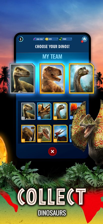 发现您的世界并收集史诗般的恐龙DNA,以便在实验室中升级并创建混合动力。制作完美的击球队,让他们参加实时的球员与球员比赛。挑战你的朋友赢得独家奖励!