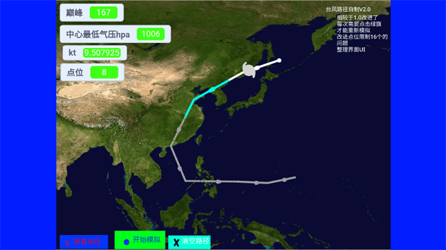 1.模拟台风移动:根据预设的地图和气候条件,模拟台风的移动轨迹和强度。