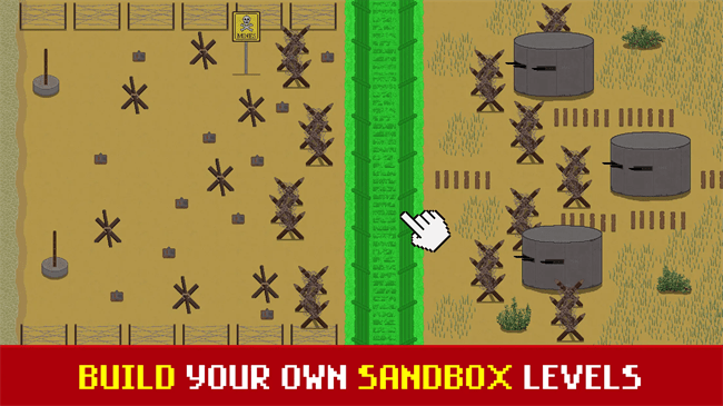 在令人惊叹的像素艺术中,使用许多对象(例如地堡、战壕、带刺铁丝网、装甲列车等)构建自己的史诗级别。选择您军队的地形、难度、天气、起始资金和作战部队,以自定义您的级别。你会建造什么?