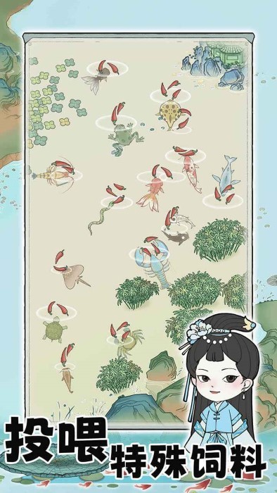 荷塘争霸最新版是一个古风模拟经营游戏,在荷塘饲养活物,养成荷塘霸主!玩家可以购买并使用各种不同类型的装饰品,如花朵、石头、水晶等,还可以提高多种食物给水里生物,让自己想要繁殖的生物消灭其他动物。