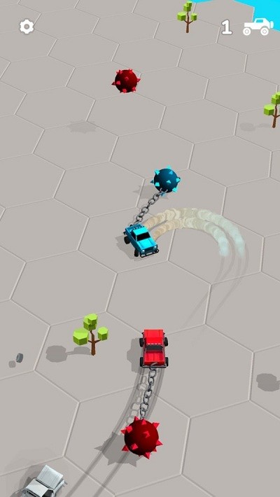 1.可以自由的掌握你自己的汽车,在蜂窝状的地图上开始撞击你自己的对手。