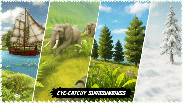 您将在野生森林狩猎景观、山地地形和丛林环境中执行动物狩猎的逼真野生动物任务。
