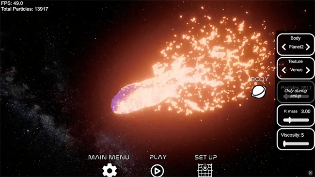 调整粒子数、行星速度和碰撞精度等参数,以创建自己的碰撞场景。