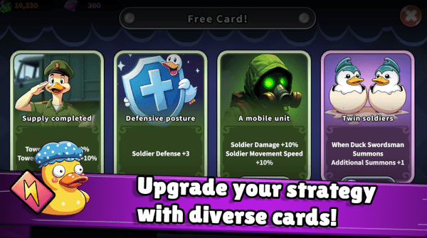 鸭鸭防线最新版是一个与鸭子一起冒险的休闲策略塔防游戏!指挥搞笑又可爱的鸭子军团迎战敌人吧!和鸭子们一起赢得每一场战斗!
