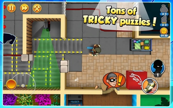 神偷鲍勃2破解版无限金币版是一款非常刺激好玩的冒险动作游戏,你将扮演神偷鲍勃进行盗窃,并且要躲避警察的逃脱,非常需要玩家有灵敏的反应,与警察斗智斗勇,让人心惊肉跳,感兴趣的玩家就快来下载吧!