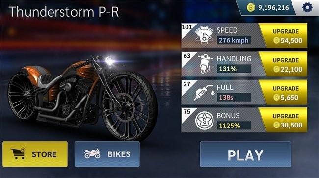 3.可以自由解锁和升级12辆摩托车。您可以使用金币来升级摩托车上的所有硬件。