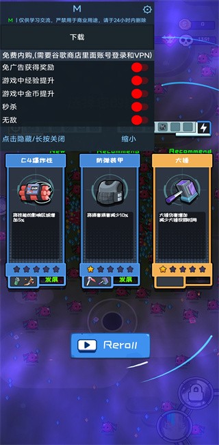 内置MOD菜单:部分版本提供了内置MOD菜单,支持免内购、免广告获得奖励、经验多倍、金币多倍等功能。