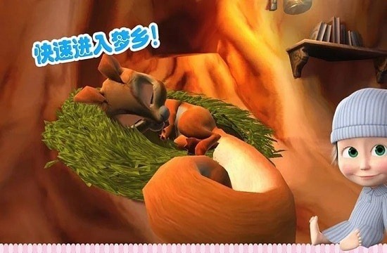 游戏中会有很多的睡前小故事,可以帮助游戏中的小熊快速的入睡,还有很多的睡前小游戏,你的任务就是和玛莎一起来讲故事,然后把小熊哄睡,游戏中的画面看起来会非常的温馨。