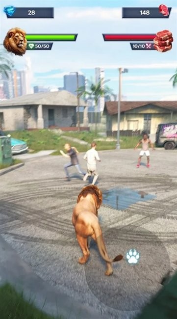 在这款惊险刺激的动作游戏中,成为都市丛林之王!你将扮演一头被释放到城市中的强大狮子,猎杀市民收集肉食,不断增强实力。使用你的战利品提升你的属性,解锁毁灭性技能,并在这个日益严峻的世界中提升你的生存几率。