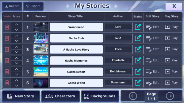 加查故事最新版来这里创建您自己的视觉小说,导出和导入您朋友的故事,或查看社区最热门的视觉小说!您还可以创建自己的角色或将自己的作品上传到游戏中!首先选择一个场景类别,可以是标题场景、对话场景、选择场景或新的路线分支场景!然后添加背景、角色和文字!接下来,您可以为场景添加背景音乐和音效!gacha story的可能性无穷无尽!