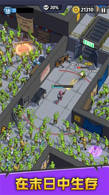 在一家废弃诊所的狭窄空间中射击外星人。 在子弹地狱中的核电站反应堆上的数百个僵尸的割草浪潮。 在核筒仓中与一个强大的老板作战。 对于这些战斗,您将可以使用从手枪到火箭发射器的大量不同武器。 在我们的离线自上而下的射击游戏中,将有很多肾上腺素的动作和射击与成群的外星人。