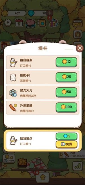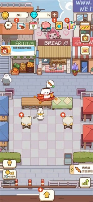 升级系统:玩家花费金币可以提高产品售价、产品制造速度、雇用更多员工、提高员工速度、吸引更多顾客、添加更多桌椅等。
