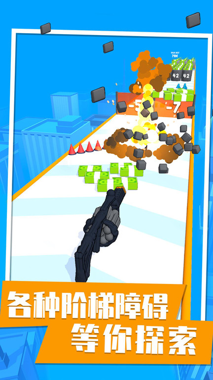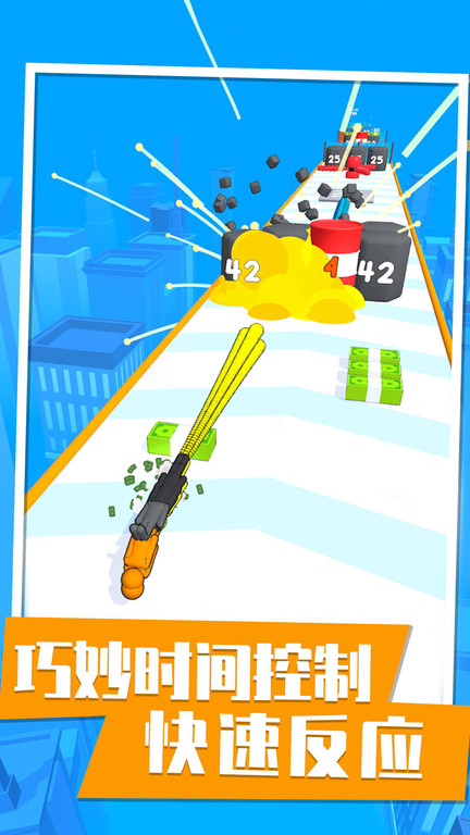 火柴人枪游戏是一款非常好玩的趣味跑酷玩法的游戏,游戏中玩起来还是很不错的,在游戏中玩家你要操控一把枪在这里进行前进,你要用枪来击碎前方的障碍物,获得前方的金钱奖励,在赛道上还有很多的道具可以使用,感兴趣的朋友们快来下载体验吧!