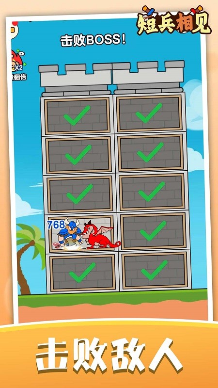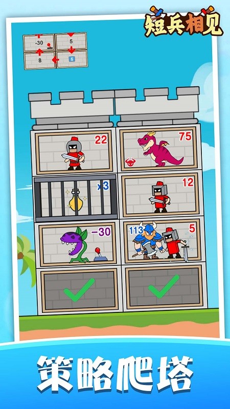 短兵相见游戏是一个爬塔战斗游戏,游戏中的画面很清新亮丽,玩家将操作着自己的小兵去进行爬塔战斗。游戏中有很多不同的关卡可以尽情挑战,玩家可以通过策略和战术去获取最终的胜利。游戏玩法十分有趣,很考验玩家的操作能力。