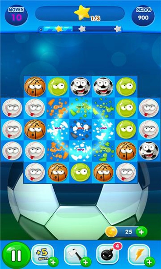 1.游戏以足球为消除元素,每一个足球都有独特的表情