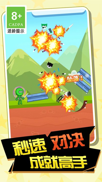 小明是一位爱打抱不平的青年,他的家乡被一帮黑势力霸占,为了家乡人民的安危,小明扛起了武器,打向了黑势力的总部,游戏操作非常简单,瞄准目标,画线对准敌人,是用特技,把敌人打败