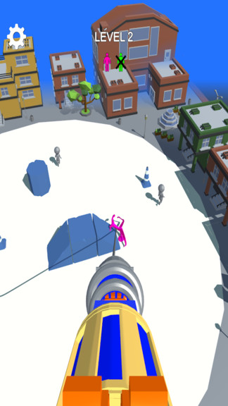 勾住人类手机版是一款休闲类游戏。游戏采用俯视的视角,第一人称的发射器,帮助你快速勾住人类。画面中的火柴人颜色形态都不太一样,你需要运用灵活的捕捉技术将这些火柴人勾住,每一个等级都有不同的挑战。
