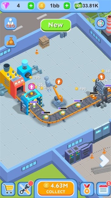 传送带工艺小游戏经营属于自己的工厂,通过完成生产来获取更多货物,并将其进行销售,以此来获得更多的收入。随着不断生产发展,让玩家所拥有的工厂规模不断升级,还有更多经营挑战等你来参与。