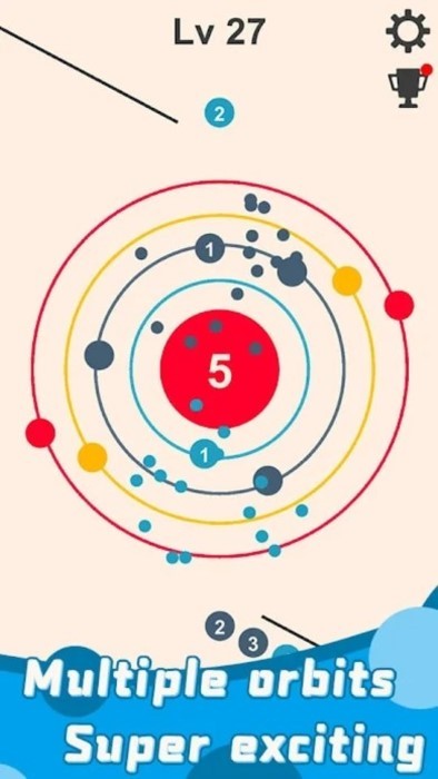 整个游戏画面中心有一个核心的圆球,外围有几个圆环就像是星环一样,部分2265关卡的环形轨道上还预制有球形的阻挡,就像恒星系统一样。