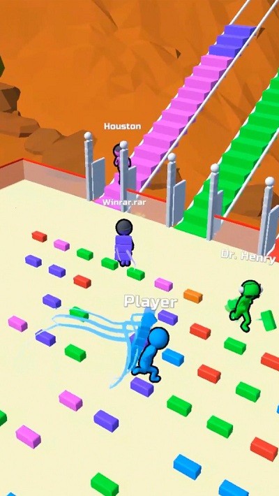 玩家需要拾取脚下的木板,用这些材料来进行建造铺成一条道路;当你走到竖高高的木板面前时会自动的为你铺路,但是你可以自由的转换方向,让自己朝着陆地的方向前进。操作非常丝滑,虚拟摇杆控制角色,各种走位走位,飘忽不定的身法。