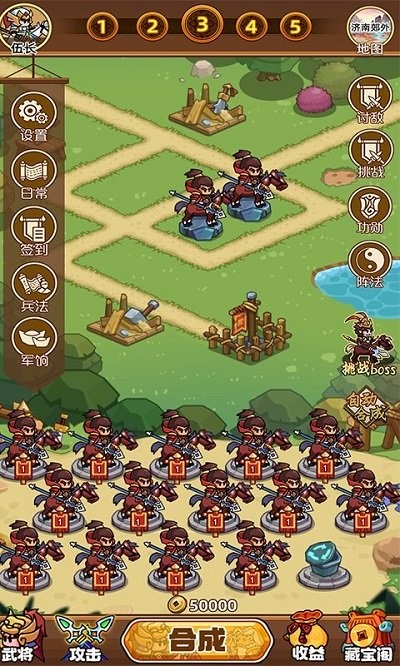 ·通过合成武将提升自己的实力,解决不同的敌人逐渐变强,完成各种挑战任务