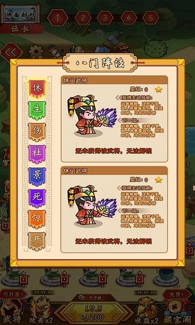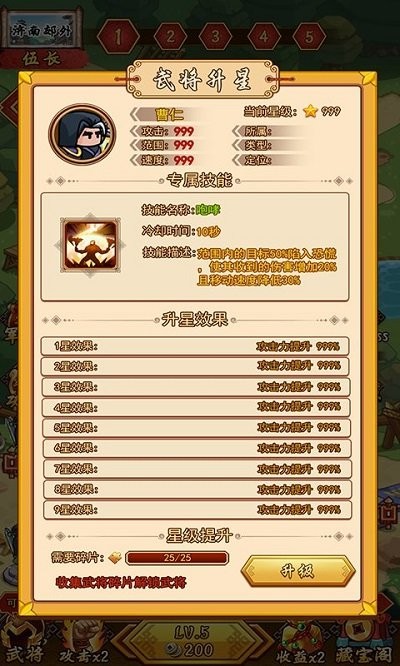·有多个三国武将可以让玩家去召唤,相同等级的武将可以通过合成来提升等级和能力
