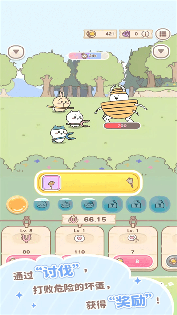 一款由热门的休闲养成类游戏,在游戏中玩家可以和总多可爱的吉伊卡哇一起冒险,游戏围绕着吉伊卡哇,小八,兔子等非常可爱的角色展开的,玩家可以与他们一起探索,互动,体验非常有趣的日常生活,玩家还可以在游戏中收集材料制作美食,打造温馨的生活环境,还能参加冒险游戏,探索未知世界。