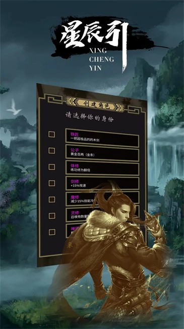 星辰引安卓版以文字为主打造的放置江湖系列游戏,玩家在游戏中将探索属于自己的武侠故事。游戏内提供了多项精彩,玩家可选择身份自由的去探索,通过不断修炼成为一代大侠,还有不同门派可供加入。