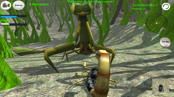 在这个inesct模拟器和动物模拟器你可以过期冒险从一个危险的蝎子的角度。这个3D生存游戏和动物模拟器会让你进入一个逼真的模拟昆虫世界。建立自己的虚拟蝎子群体。搜寻食物资源,以喂饱你的幼虫。探索一个巨大而细致的自然栖息地,那里到处都是会攻击的昆虫。 对抗敌人的昆虫,如巨大的蝎子,蜘蛛或螳螂,蜱,蠕虫,蚂蚁。 动物模拟器- 3D蝎子模拟器功能概述-: