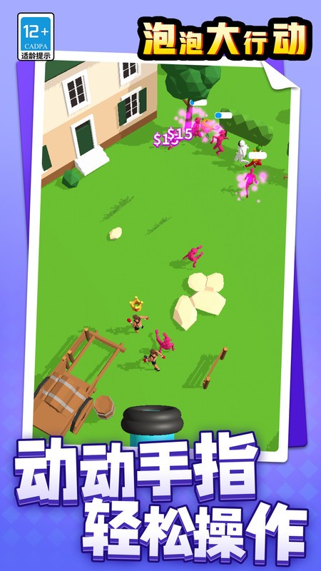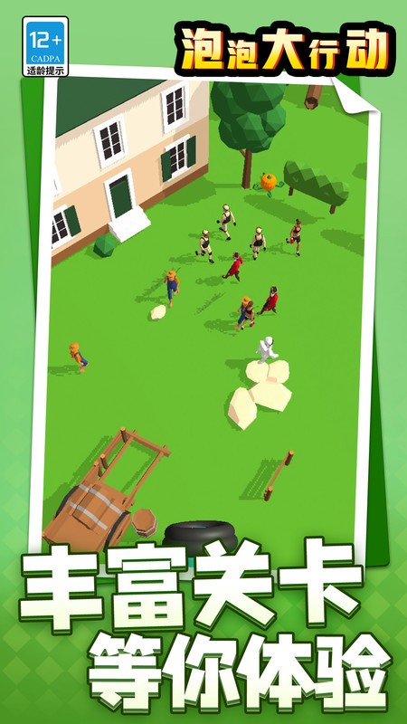 《泡泡大行动》是一款动作闯关类休闲游戏。玩家需要通过向人群中发射不同颜色的泡泡,让带有颜色的泡泡在落地时感染到更多的人群,进而收集实力强大的士兵去组建强大战斗阵容,完成不同难度的任务。闯关胜利可获得更多的道具来帮助自己面对难关,等你一起来冒险!