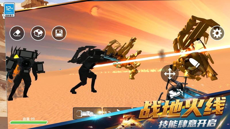沙漠战斗车游戏手机版采用了沙盒战斗玩法,游戏中玩家需要控制机器人战车来和敌人对抗,庞大的物理沙盒场景,合理布置策略,利用武器来击败对方迎接新挑战,主要以射击的方式来战斗!
