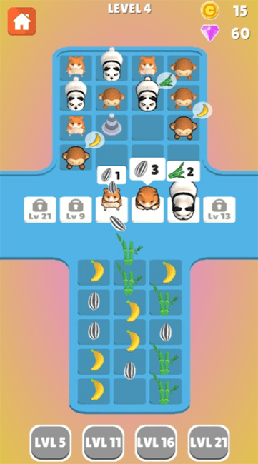 游戏关卡丰富多样,随着关卡的推进,难度逐渐增大,动物种类增多,食物搭配组合复杂,不断挑战玩家的思维能力。