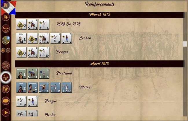 -数十个单独命名和评级的将军领导着由抽象力量点组成的军队,每个力量点代表大约5000名步兵或骑兵及其固有炮兵。
