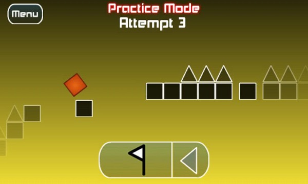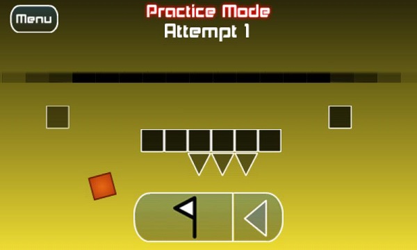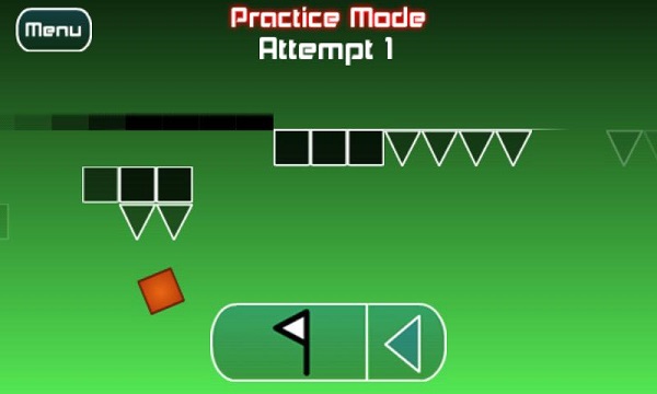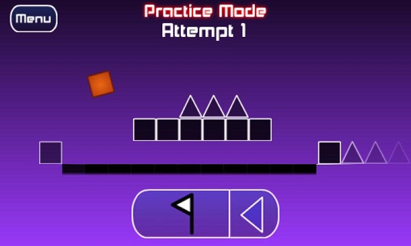 游戏的玩法比较简单,你需要控制那个橙色的正方形跳过那些冲过来的三角形,地面上三角形不断的前进,因为一旦碰上三角形它就会粉身碎骨了。