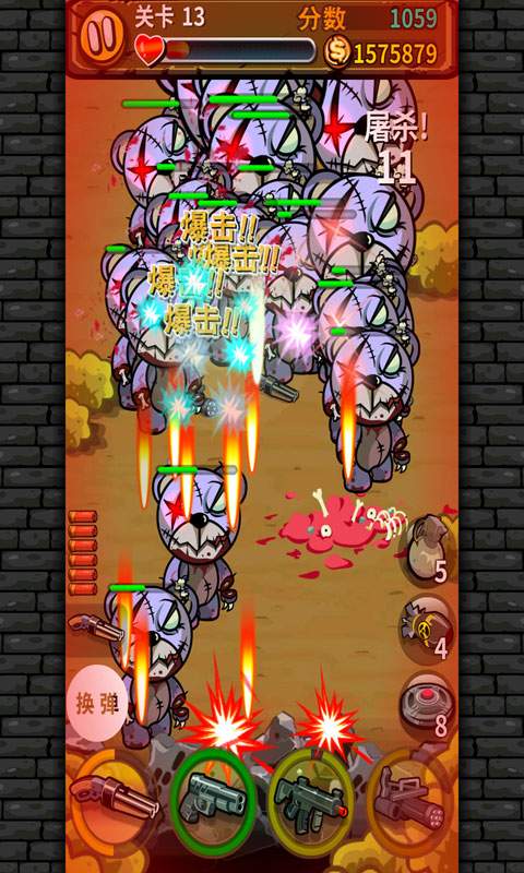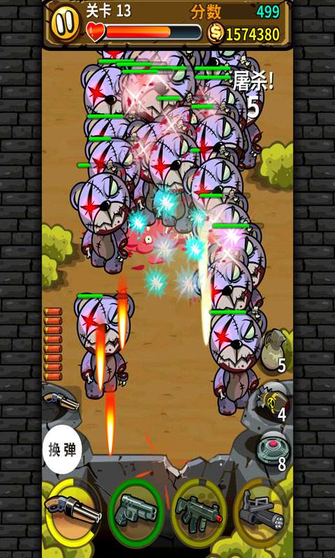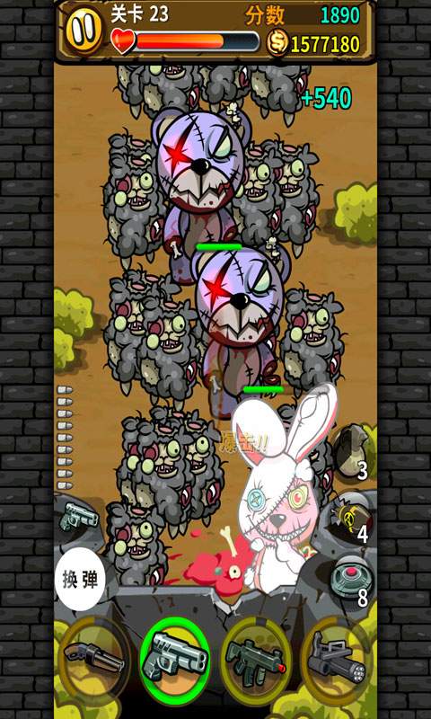 怪物的突然袭击让人类陷入慌乱之中,乍眼一看甚是凶残的怪物其实是破旧的玩偶变成的僵尸模样,一开始对玩偶的喜爱随着玩具的破旧而消失,被抛起的玩具为了重回家园,而疯狂的袭击着人类。玩家们要做到的就是拿起手中的武器狠狠的消灭玩偶,变得凶残的玩偶看起来还是呆萌的模样,只是武器的使用对于大波来袭的玩偶是没有作用的。所以及时升级你的武器吧。