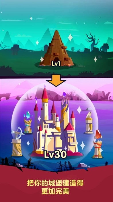 简单但令人上瘾的战斗。你可以通过2265滑动屏幕杀死怪物,并挑战关卡boss。随着游戏的进展,你会逐步建立一个坚实的堡垒。