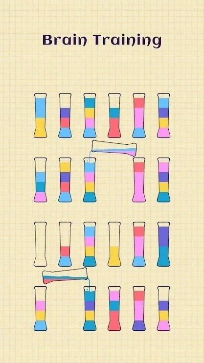 水彩排序最新版是一款可以让玩家自由闯关挑战的精彩排序游戏,游戏的玩法非常简单,通过倒水来将所有一样颜色的水彩放在一个瓶子中,拥有不同难度的关卡随时都可以挑战,趣味多多任你玩,感兴趣的话就来下载试试吧!