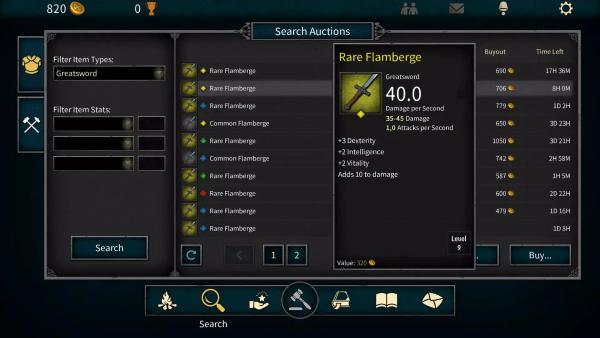 在地牢中可以找到大部分装备作为战利品。但并不是所有装备都需要:可以在拍卖行或通过交易与其他玩家交换战利品。