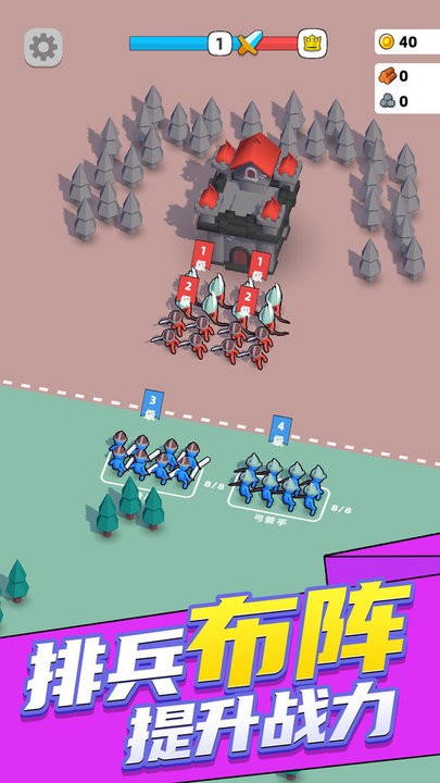 3.部署士兵搭配不同的兵种进行战斗,同时还要不断招募新士兵,扩充兵种的类型