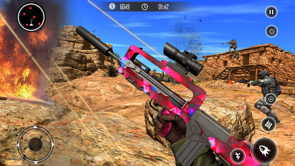 3、第一视角身临其境体验畅爽射击快感,虚拟摇杆操作流畅,疯狂射击坚持到底