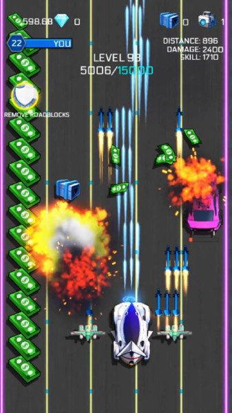 游戏融合了汽车合并和射击的元素,合并升级防暴战车,全新的闯关玩法,在道路上疯狂的射击,消灭敌人,驾驶载有武器的汽车不断的行驶前进,释放强大的武器力量,还有更多的车队可供解锁和使用,每一次对局结算都会产生积分和金币,升级自己的战车打造出最坚硬最强的顶级战车。