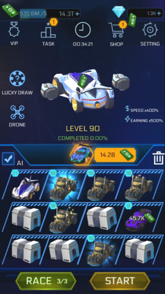 ·多种赛车模型拥有大量特色的造型款式,尽情的打造你最爱的个性风格;