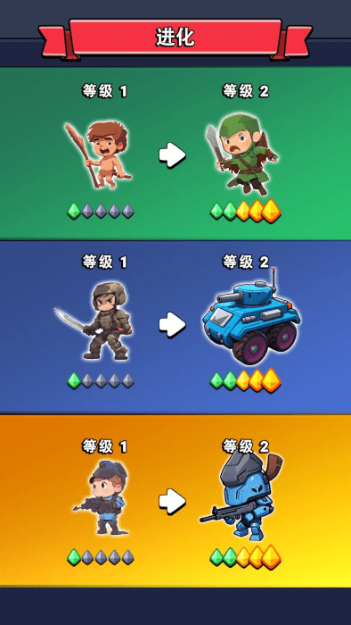 每个时代都会解锁独特的部队和武器,为战场带来新的战略。从史前的恐龙骑士到纪律严明的斯巴达战士,再到现代坦克的火力,每个时代都提供全新的单位和武器。随着每次升级,见证您的军队不断进化,成为不可阻挡的战争机器。这个战斗模拟器带来无尽的乐趣,让您在时间与空间中适应新的挑战。